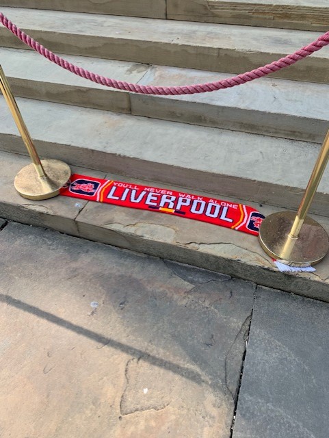 Wreaths, messages of support for the families, and Liverpool memorabilia were also left on the steps ahead of the minutes silence by the people of Liverpool.